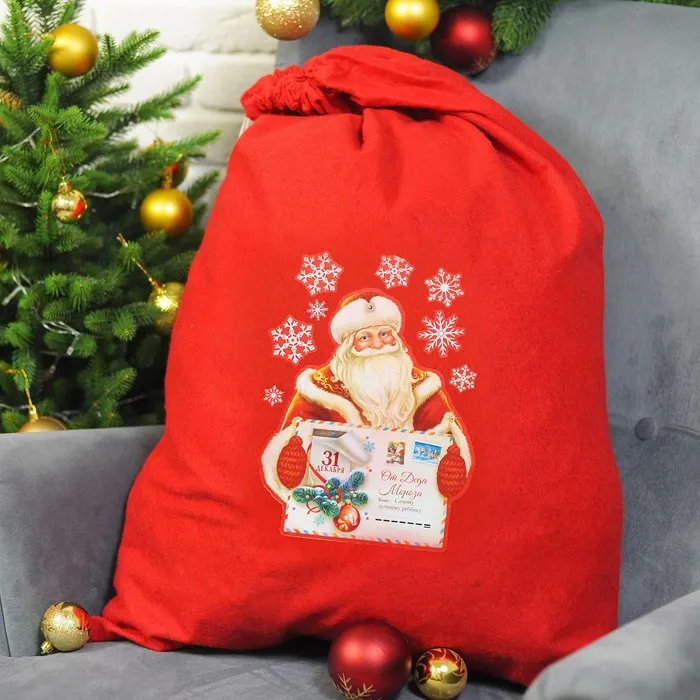 - Новогодний мешок сделан из полиэстера.