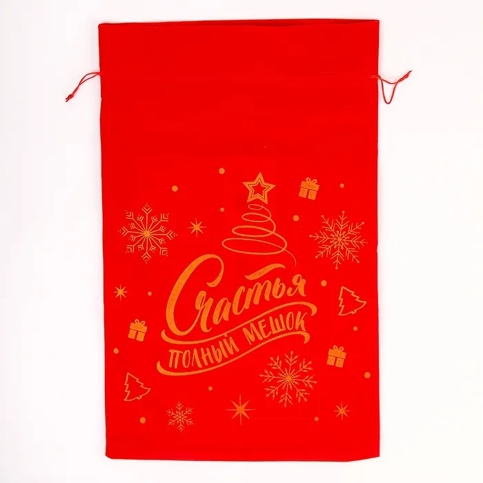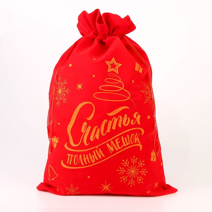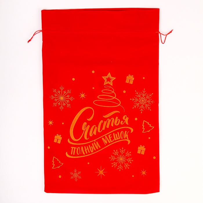 Мешок новогодний Деда Мороза «Счастья полный мешок», красный бархат, 60 х 40см — Характеристики