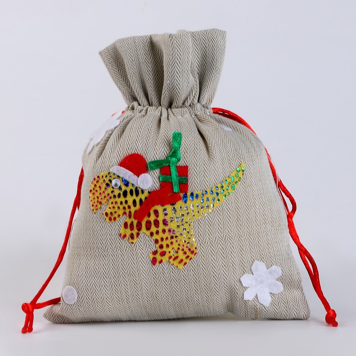 Текстильный мешочек «Динозавр с подарками» поможет красиво упаковать подарок к Новому году.