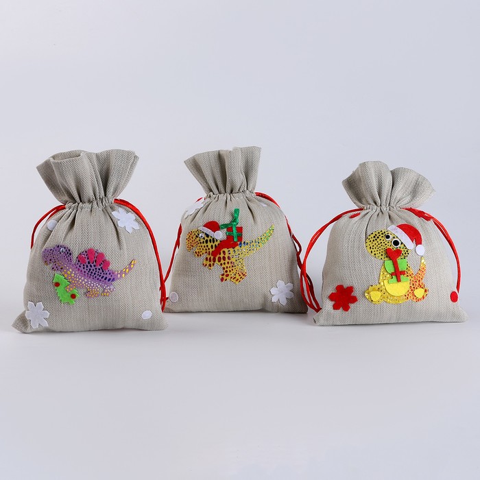 Мешок новогодний для подарков «Динозавр с подарками», 19 × 14 см, МИКС — Характеристики