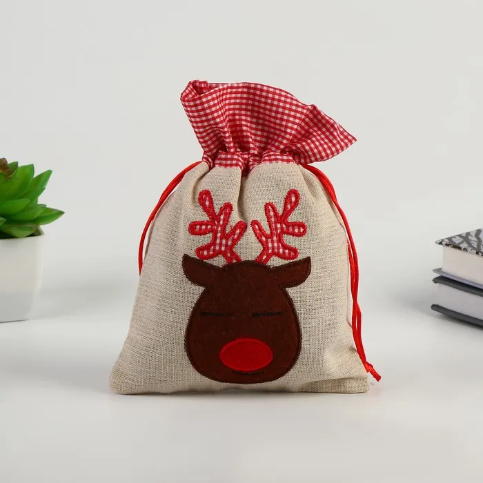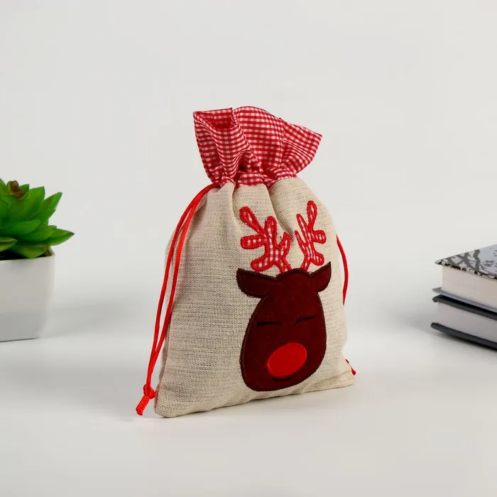 Текстильный мешочек «Олень» поможет красиво упаковать подарок к Новому году.