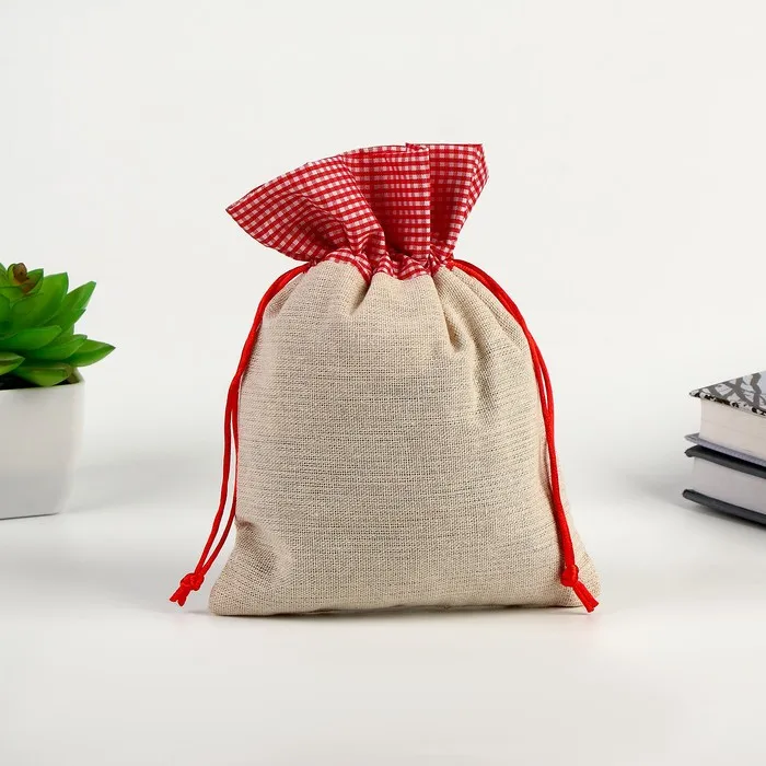 - Вверху у мешочка есть шнурок который стягивает края — подарок случайно не выпадет.