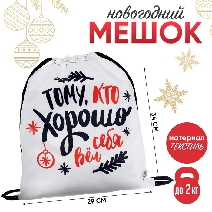 Мешок новогодний под сладости 290×340 мм, «Потому что хорошо себя вёл», полиэстер плотностью 210D — Характеристики