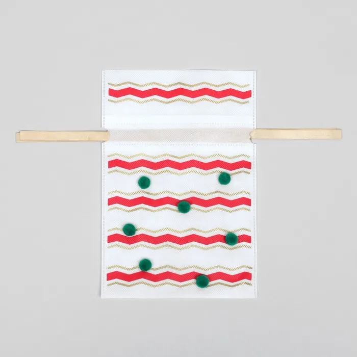 Яркий акцент новогоднего настроения! Текстильный мешок с помпонами 20×30 см — стильное решение для праздничных подарков. Традиционные красные, зеленые и белые помпоны создают ощущение веселого зимнего торжества.