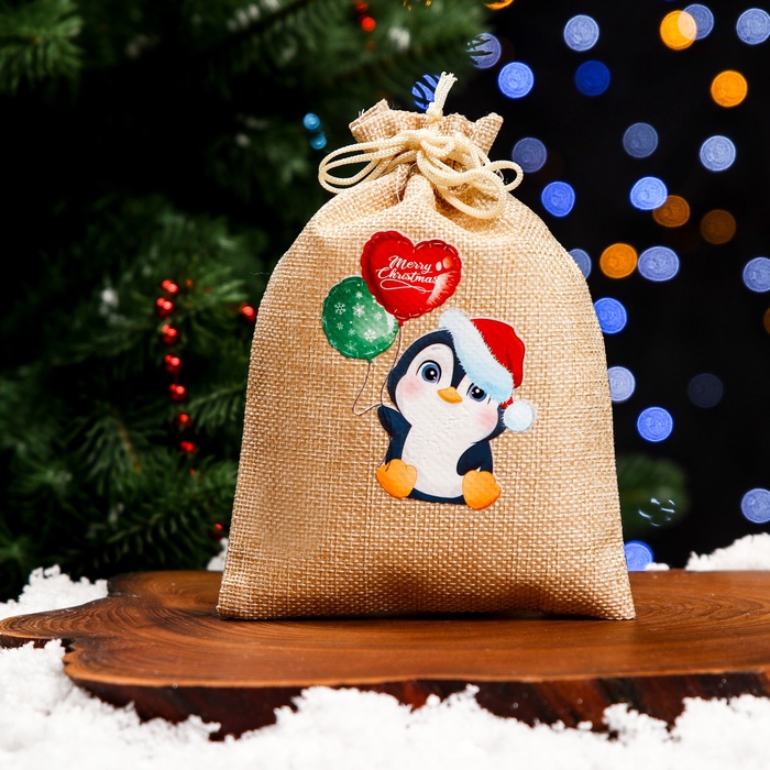 Мешок подарочный новогодний с термонаклейкой «Пингвин», 13×18 см — Характеристики