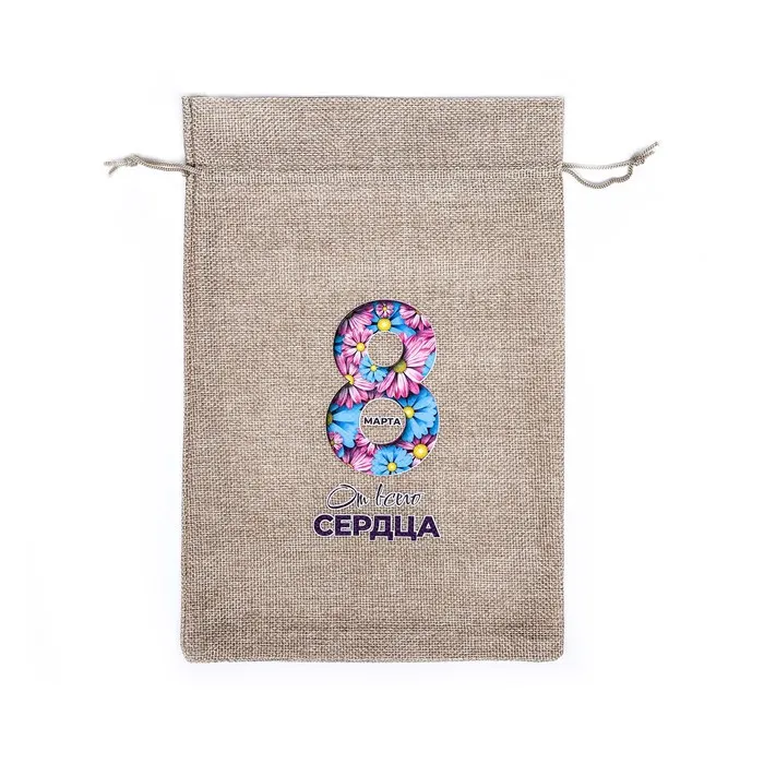 Мешок подарочный с термонаклейкой из холщи «С 8 марта!» 20×30 см — Характеристики