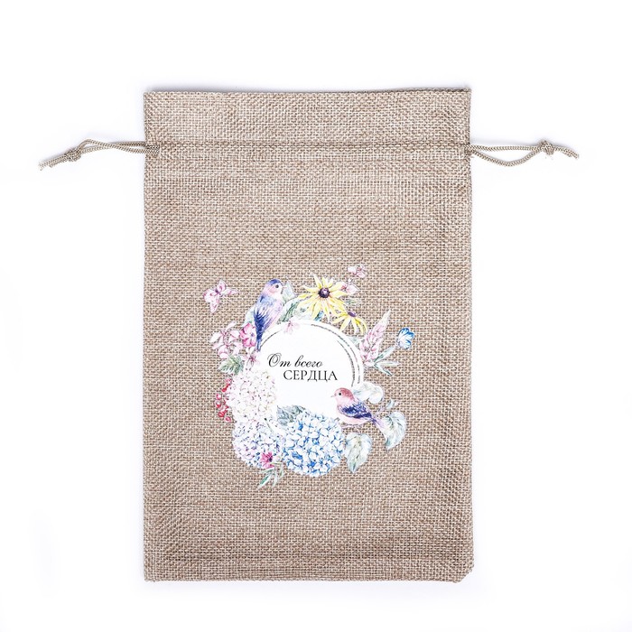 Мешок подарочный с термонаклейкой «От всего сердца» 15.5×24 см