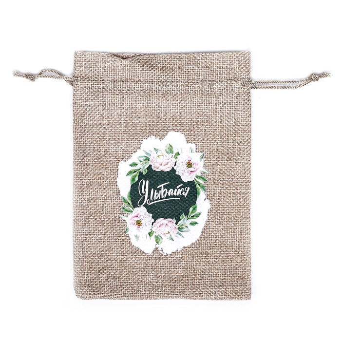 Мешок подарочный с термонаклейкой «Улыбайся» 13×18 см