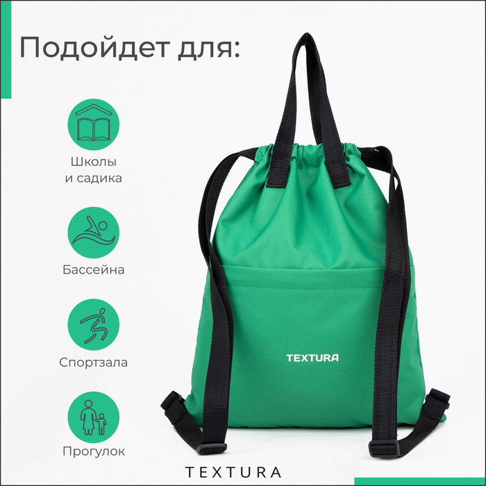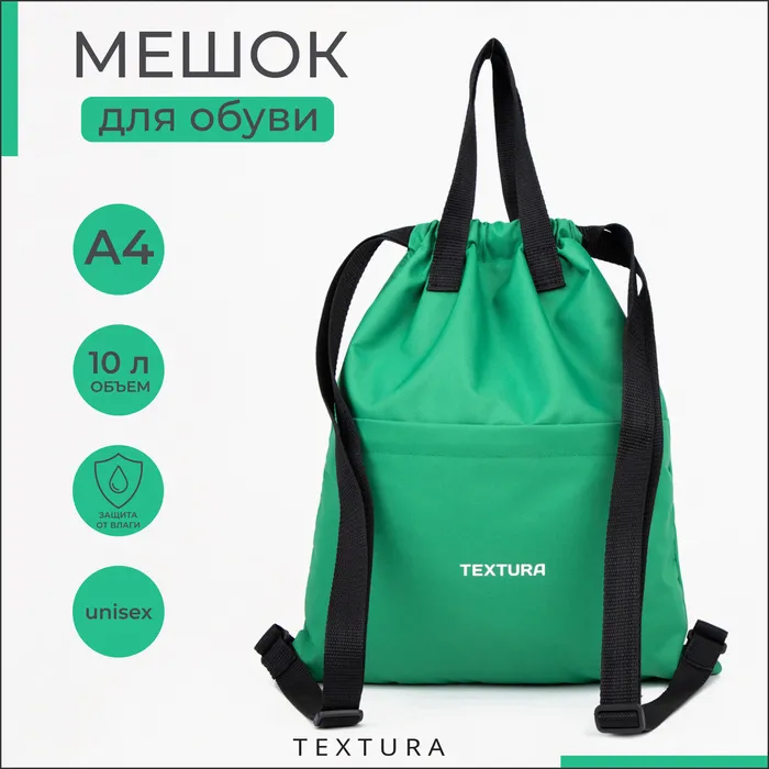 Мешок-сумка для обуви на стяжке, наружный карман,TEXTURA, цвет зелёный — Характеристики