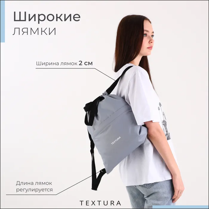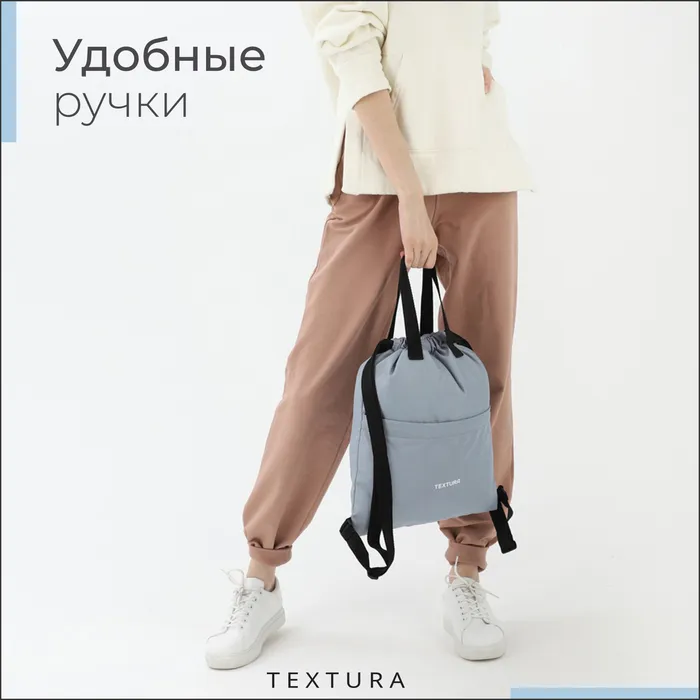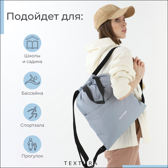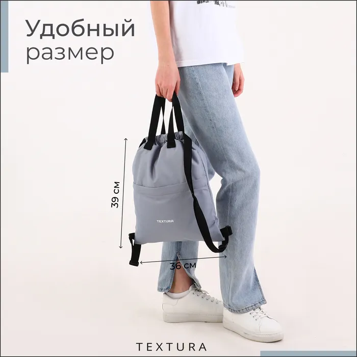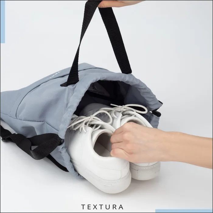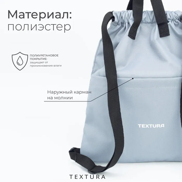 Мешок-сумка для обуви на стяжке TEXTURA, наружный карман, цвет серый — Характеристики