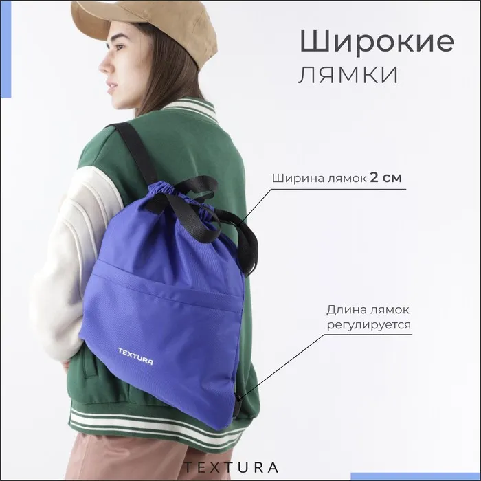 Мешок-сумка для обуви на стяжке TEXTURA, наружный карман, цвет синий — Характеристики
