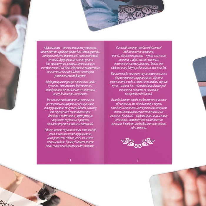 Данная колода поможет научиться правильно формулировать желания, чтобы они начали исполняться, а также позволит обрести уверенность в себе, найти верный путь и привлечь желаемое в свою жизнь с помощью конкретных действий.
