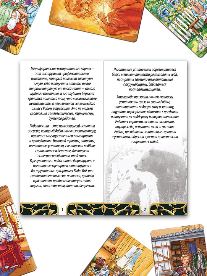 Метафорические ассоциативные карты «Энергия рода» — это уникальный набор карт, разработанный специально для работы с семейными историями и отношениями. В наборе содержится 50 карт, каждая из которых представляет собой метафору, связанную с различными аспектами жизни и отношений.