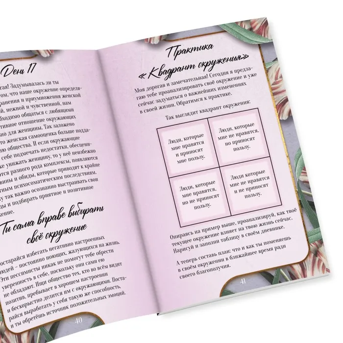 В нём подробно описаны ежедневные ресурсные практики, направленные на работу с подсознанием и замену негативных установок на позитивные и жизнеутверждающие.