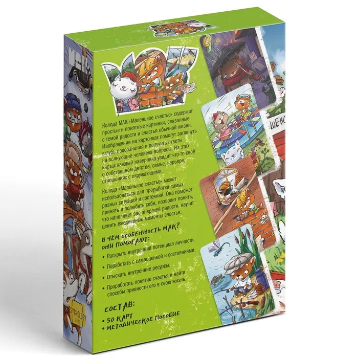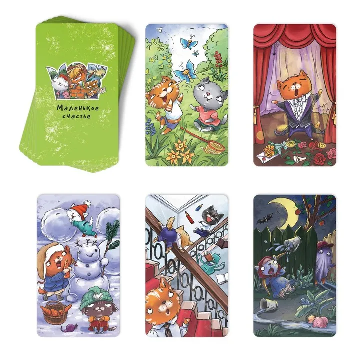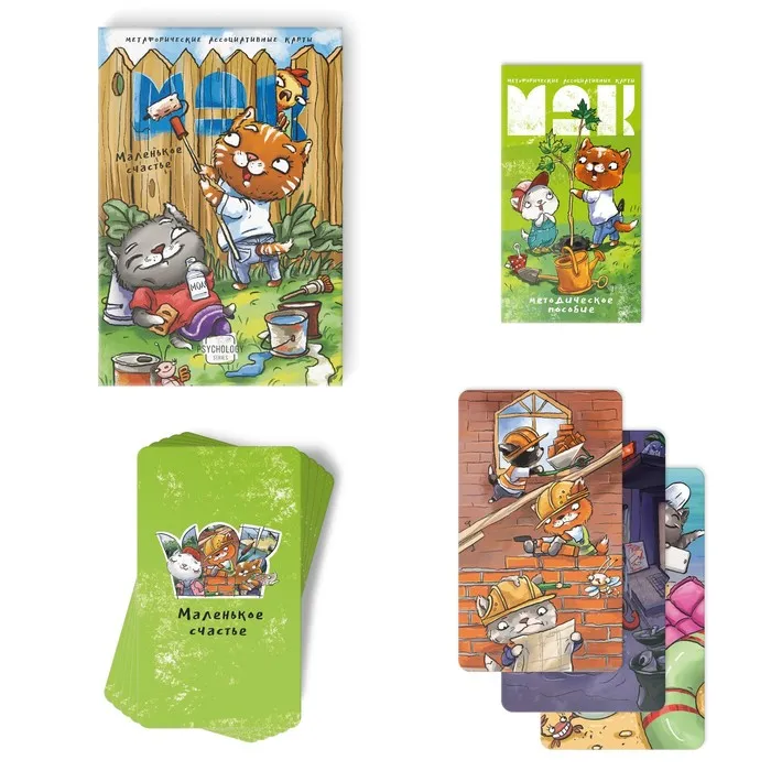 Колода метафорических ассоциативных карт «Маленькое счастье» содержит простые и понятные картинки, связанные с темой радости и счастья обычной жизни.