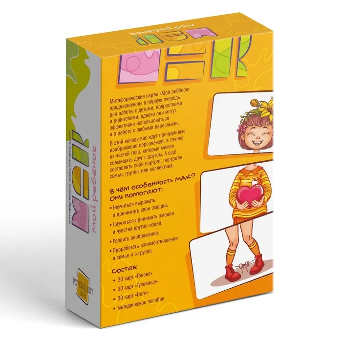 Колода предназначена для психологической работы с детьми, подростками, взрослыми, а также для налаживания отношений со своим внутренним ребенком.
