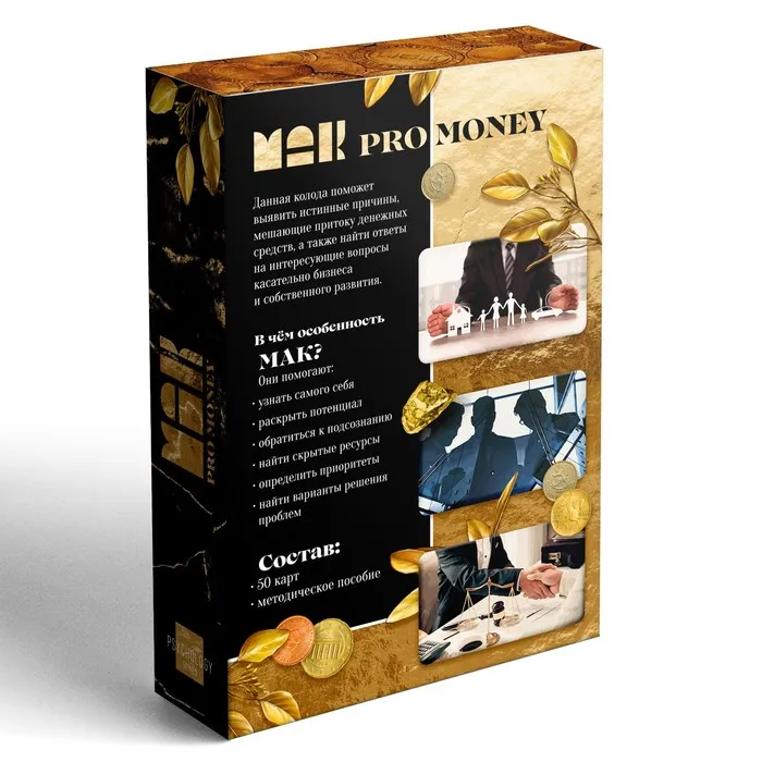 Метафорические ассоциативные карты (МАК) — это набор картинок, которые помогут заглянуть вглубь подсознания и получить ответы на интересующие вопросы. Эта колода будет полезна тем, кто хочет найти идеальную для себя сферу бизнеса, проработать проблемы и укрепить имеющийся бизнес, выяснить причины существующего положения дел и как его можно исправить. Карты помогут узнать себя с новой стороны и найти точки дальнейшего развития.