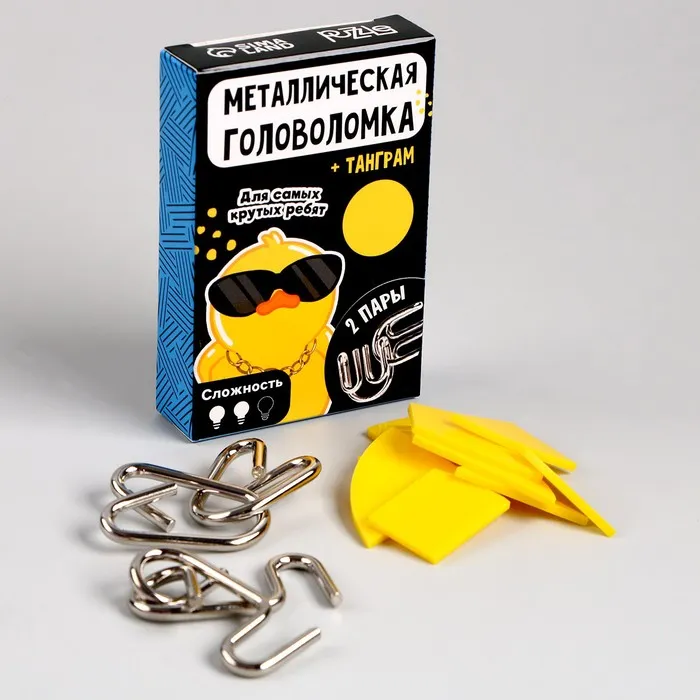 Металлические головоломки с танграмом «Для самых крутых ребят» — это увлекательный набор для любителей логических задач. В комплекте представлены две головоломки и танграм, которые заставят размышлять, анализировать и находить нестандартные решения. Такой формат отлично подходит как для детей, так и для взрослых, ведь тренировка ума полезна в любом возрасте.