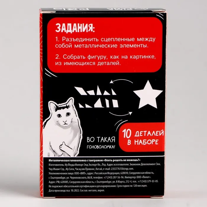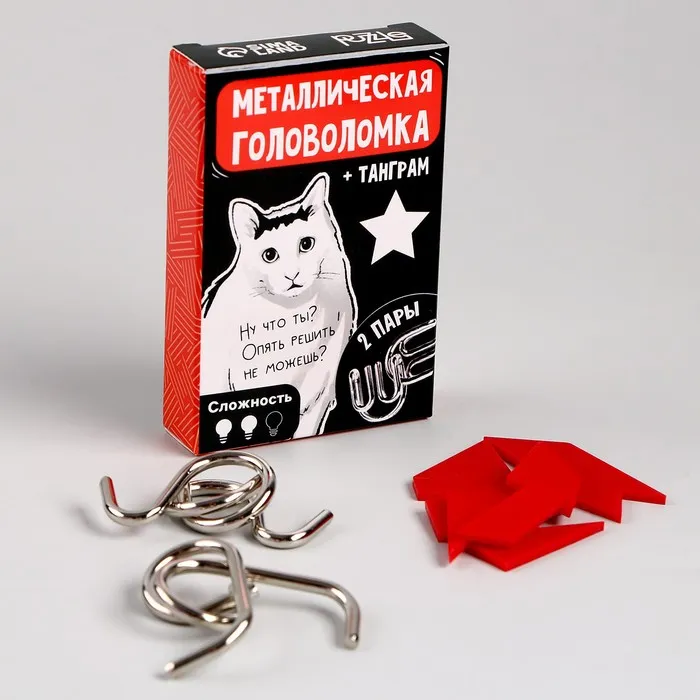 Металлические головоломки с танграмом «Опять решить не можешь?» — это увлекательный набор для любителей логических задач. В комплекте представлены две головоломки и танграм, которые заставят размышлять, анализировать и находить нестандартные решения. Такой формат отлично подходит как для детей, так и для взрослых, ведь тренировка ума полезна в любом возрасте.