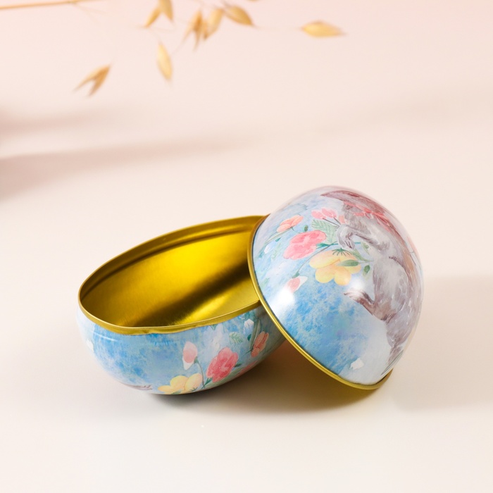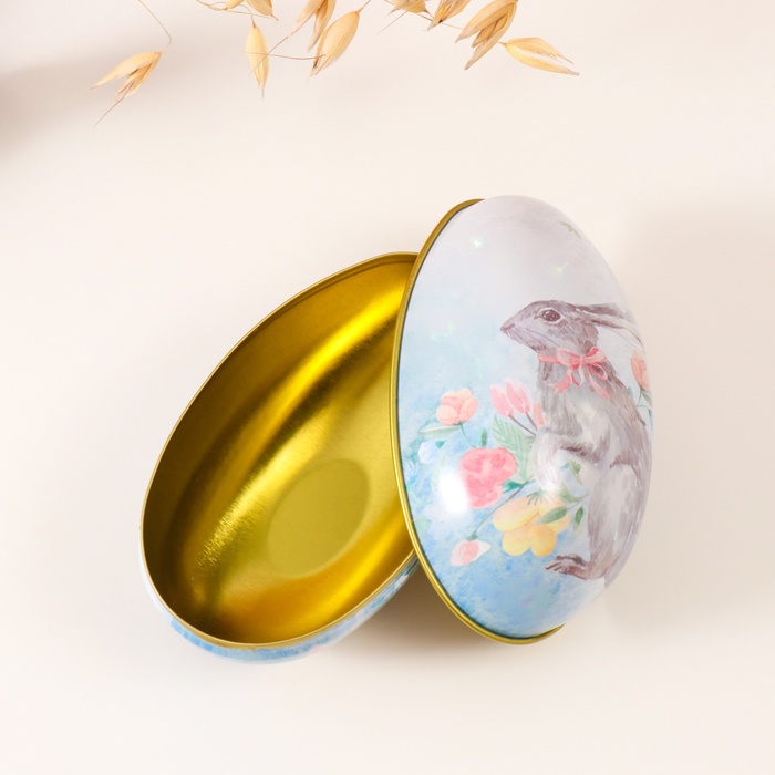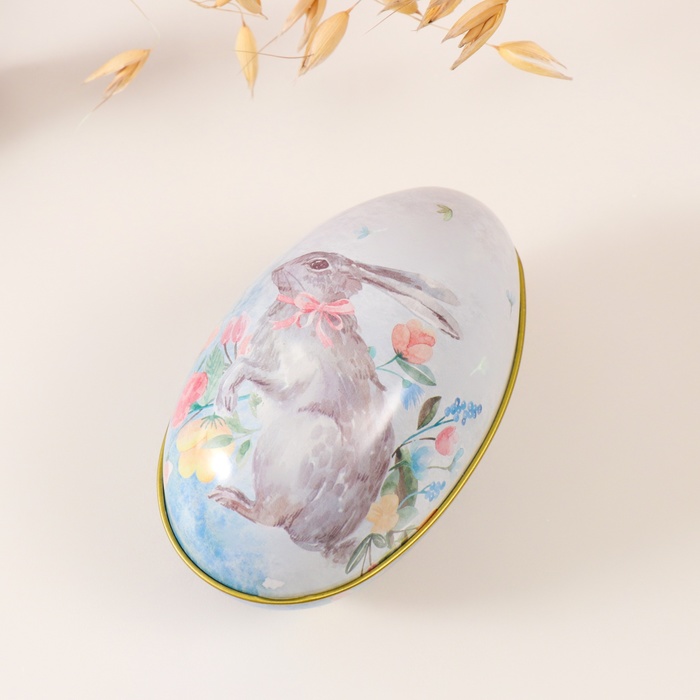 Металлическая шкатулка - яйцо «Пасхальный зайка с бантом в цветах», для украшений, хранения мелочи, 7×6.5×11 см — Характеристики