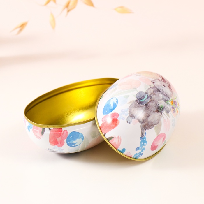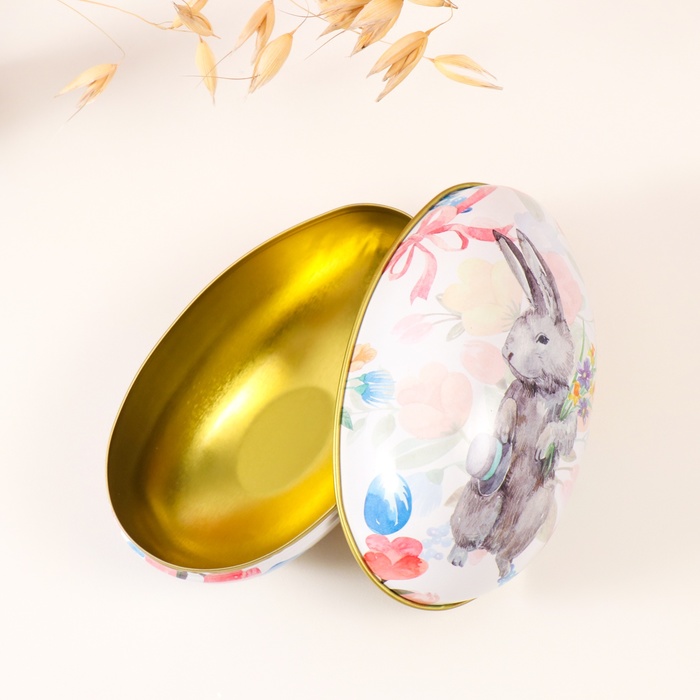 Металлическая шкатулка - яйцо «Пасхальный зайка с букетом и шляпой», для украшений, хранения мелочи, 7×6.5×11 см — Характеристики