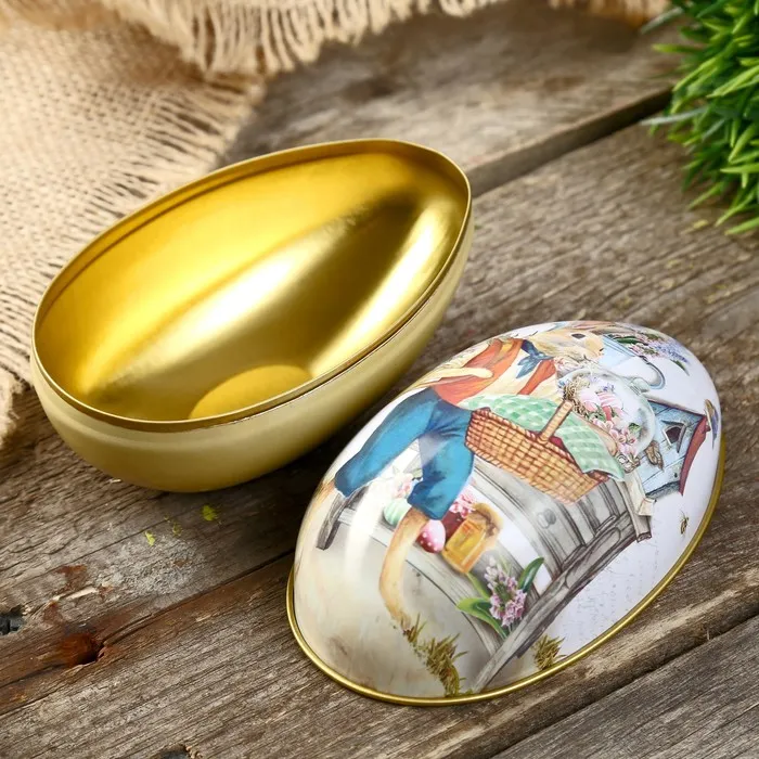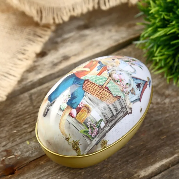 Металлическая шкатулка-яйцо «Заяц с корзиной», для украшений, хранения мелочи, 11×6.5×7 см — Характеристики