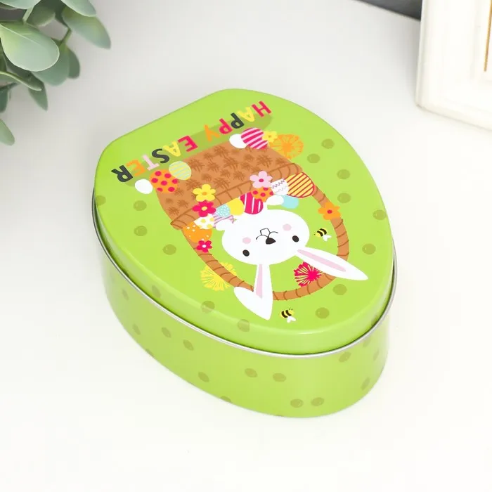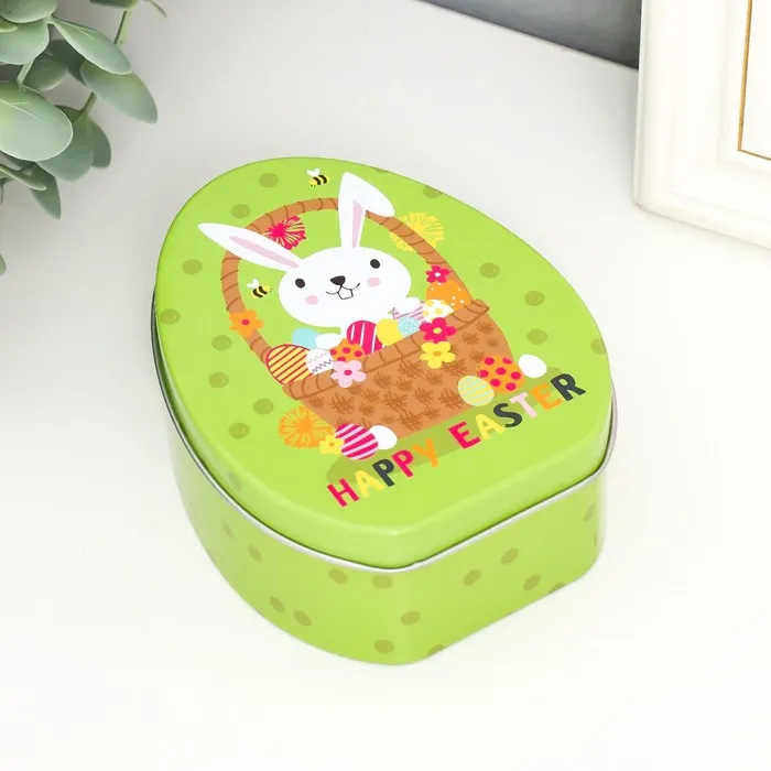 Металлическая шкатулка-яйцо «Зайчик в пасхальной корзинке», для украшений, хранения мелочи, 11.7×9.2×4.5 см — Характеристики