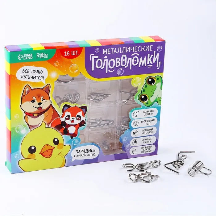 Металлические головоломки «Радуга», набор 16 шт. — Характеристики