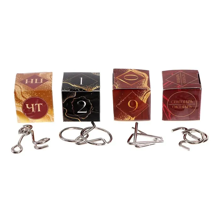 Металлические головоломки «Вечный календарь» — это увлекательный набор для любителей логических задач. В комплекте представлены четыре головоломки, которые заставят размышлять, анализировать и находить нестандартные решения. Такой формат отлично подходит как для детей, так и для взрослых, ведь тренировка ума полезна в любом возрасте.