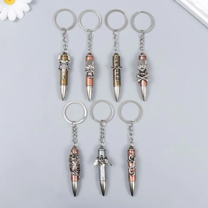 Металлический брелок для ключей на кольце «Пуля с фигуркой», 6.4×1.6×1.3 см, МИКС — Характеристики