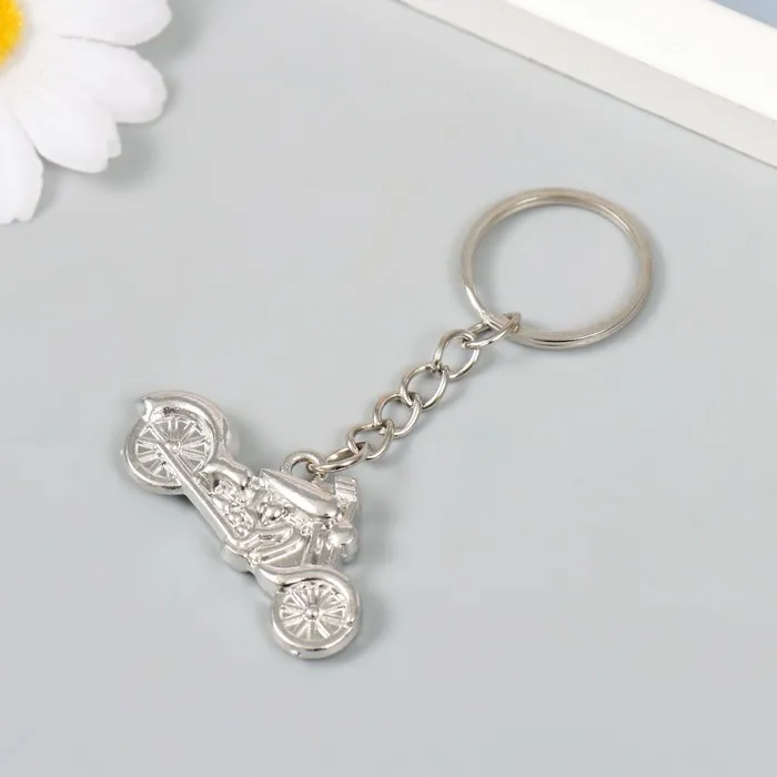 Металлический брелок для ключей на кольце «Спортивный мотоцикл», серебро, 4.5×2.2 см