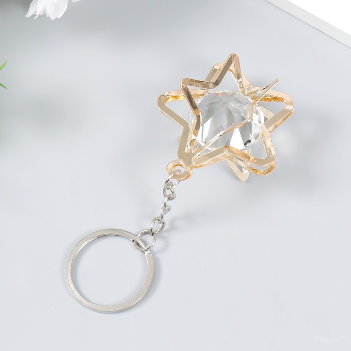 Металлический брелок для ключей на кольце «Звезда кристалл», золото, 3×4×4 см — Характеристики