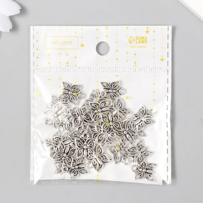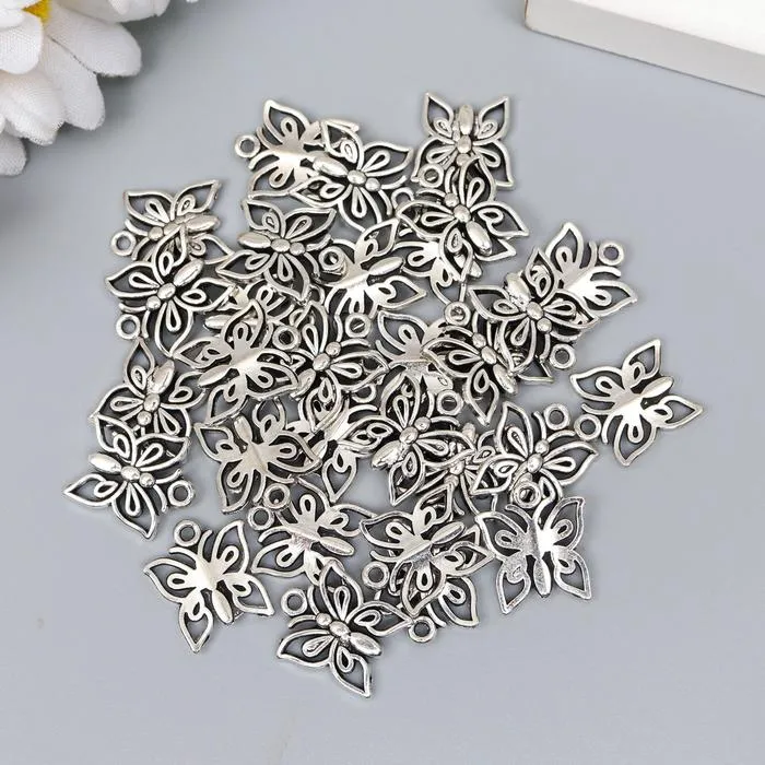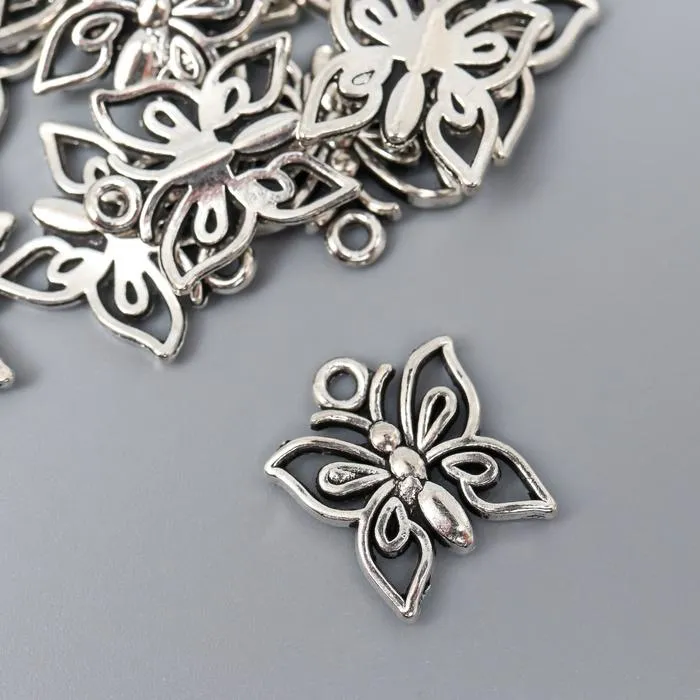 Металлический элемент, декоративная подвеска «Арт Узор. Бабочка», серебро, 1.5×1.3 см — Характеристики