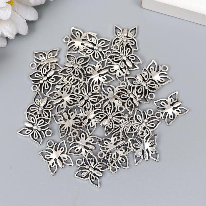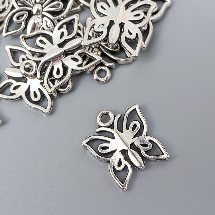 Металлический элемент, декоративная подвеска «Арт Узор. Бабочка», серебро, 1.5×1.3 см