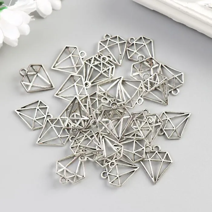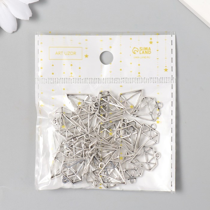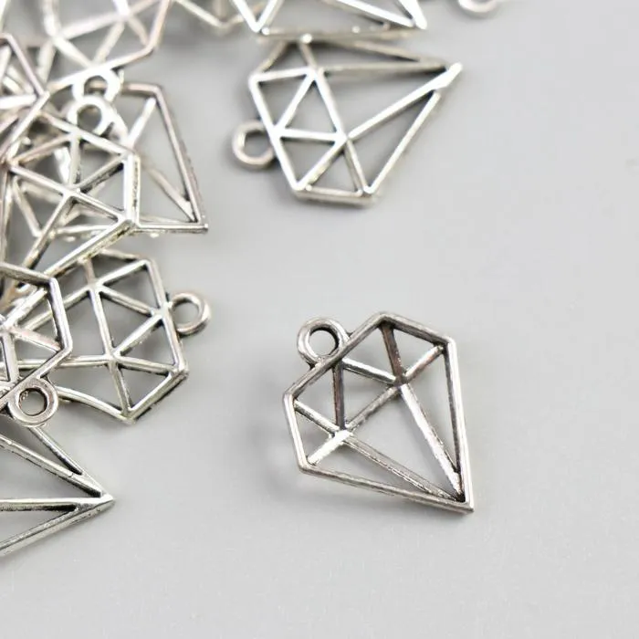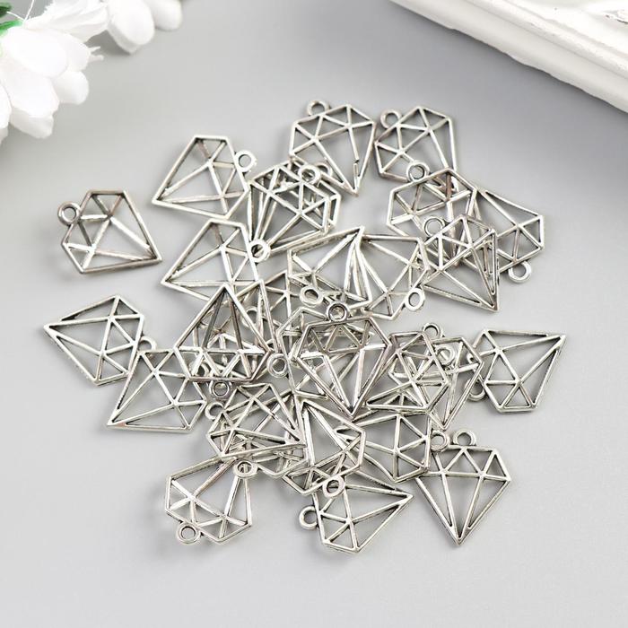 Металлический элемент, декоративная подвеска «Арт Узор. Бриллиант», серебро, 1.9×1.6 см