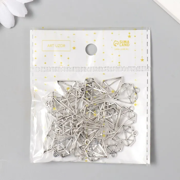 Металлический элемент, декоративная подвеска «Арт Узор. Бриллиант», серебро, 1.9×1.6 см — Характеристики