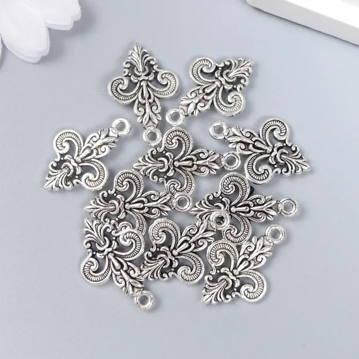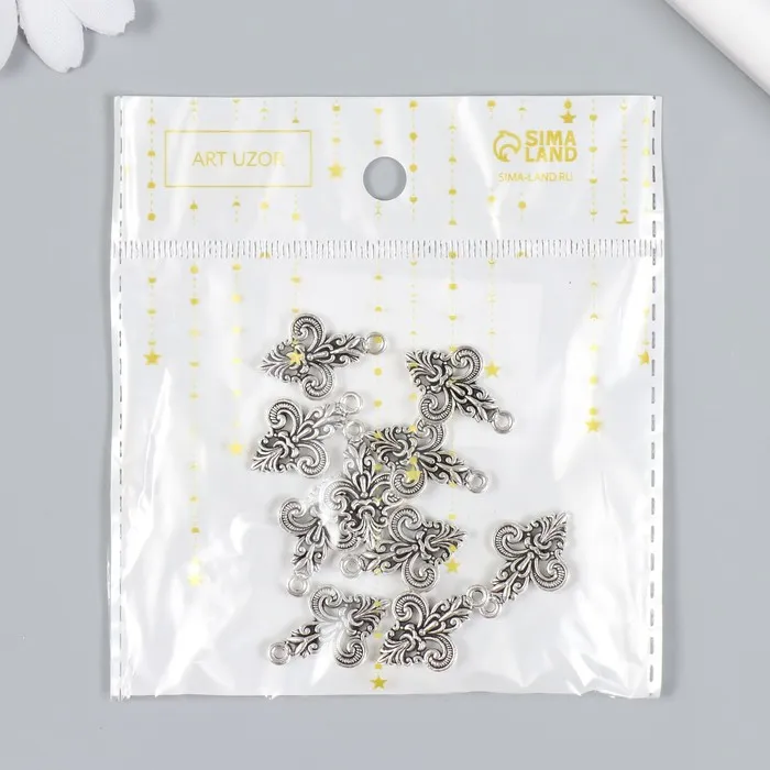 Металлический элемент, декоративная подвеска «Арт Узор. Дамаск», серебро, 2.3×1.5 см — Характеристики