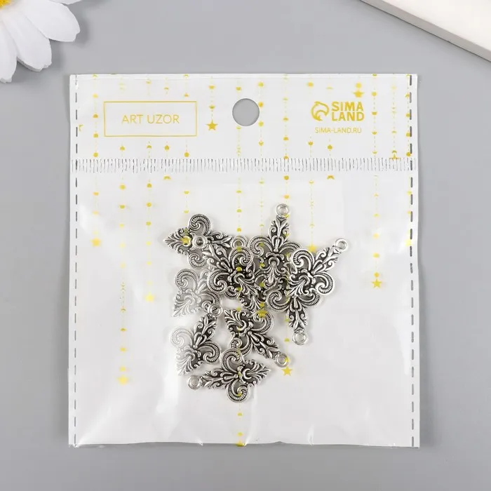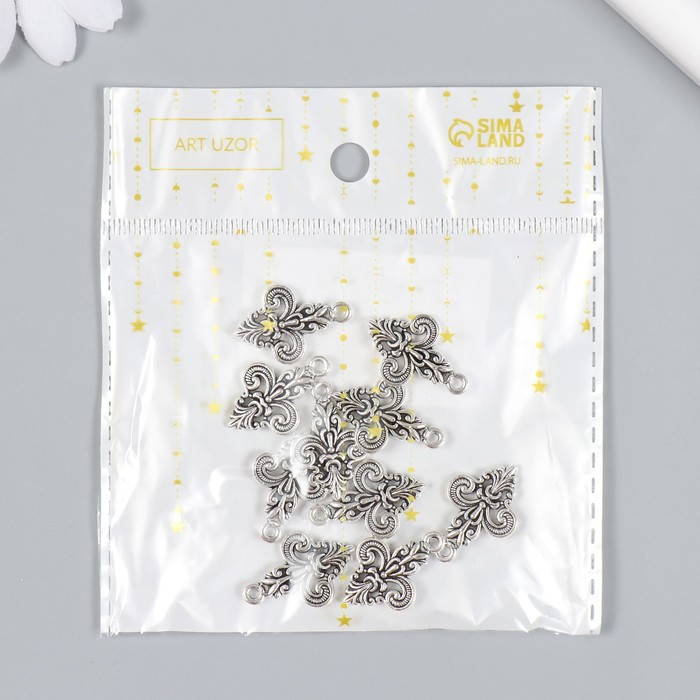 Металлический элемент, декоративная подвеска «Арт Узор. Дамаск», серебро, 2.3×1.5 см