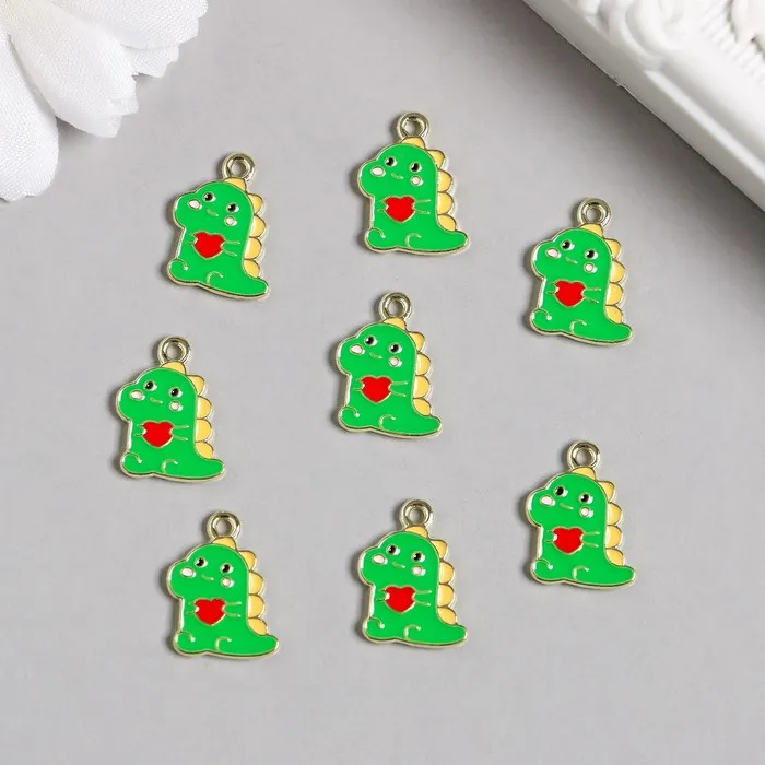 Металлический элемент, декоративная подвеска «Арт Узор. Динозаврик с сердечком», эмаль, 1.6×1.1 см