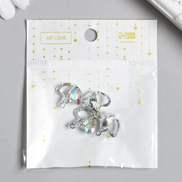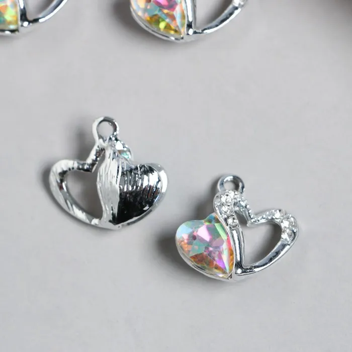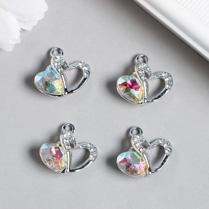 Металлический элемент, декоративная подвеска «Арт Узор. Двойное сердце», стразы, серебро, 1.7×1.8 см — Характеристики