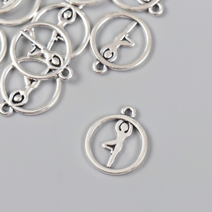 Металлический элемент, декоративная подвеска «Арт Узор. Гимнастика», серебро, 1.9×1.6 см