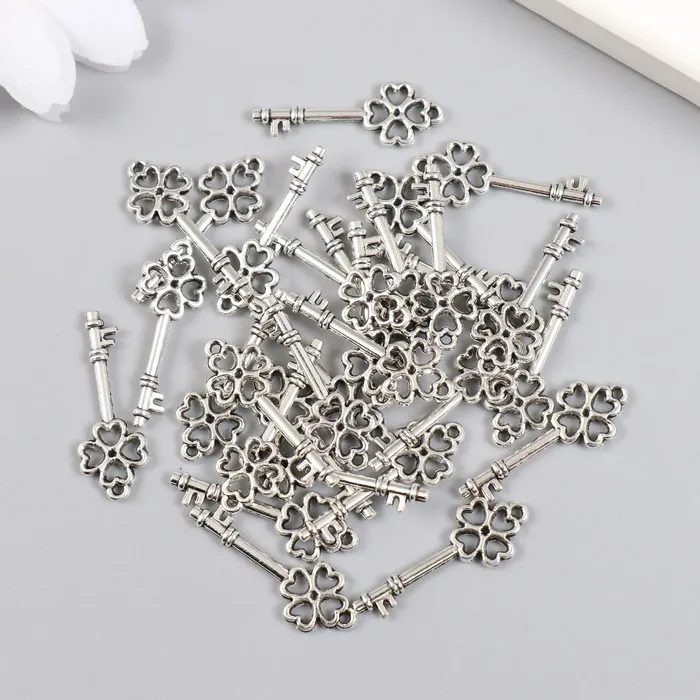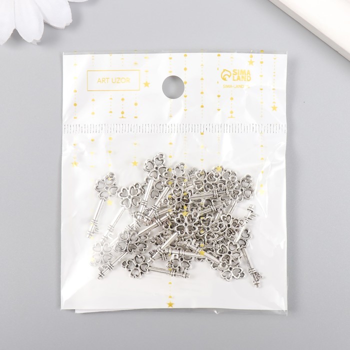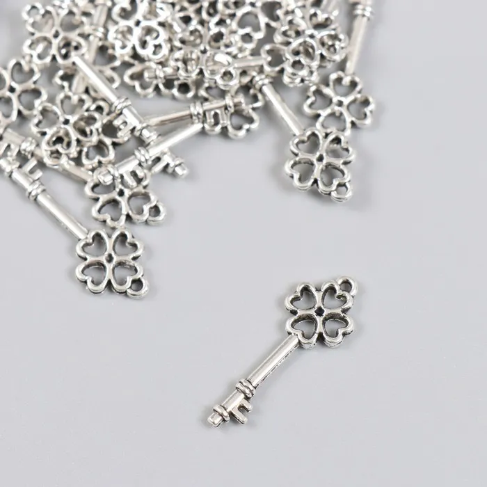 Металлический элемент, декоративная подвеска «Арт Узор. Ключик 4 сердца», серебро, 0.9×2.5 см — Характеристики