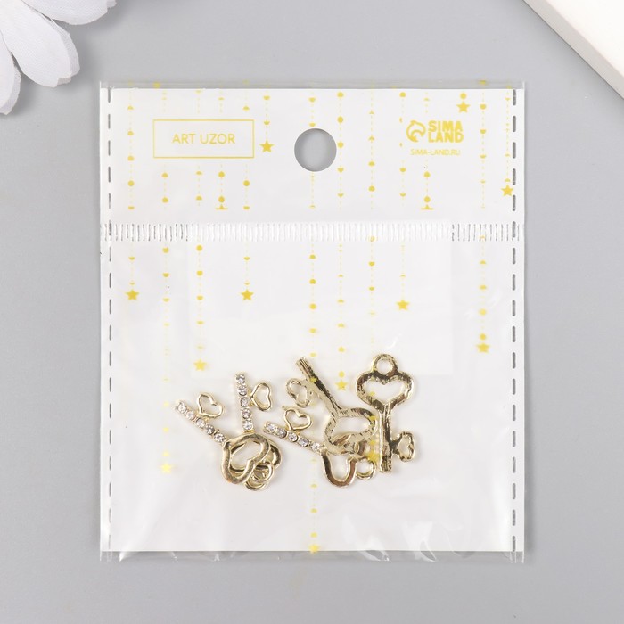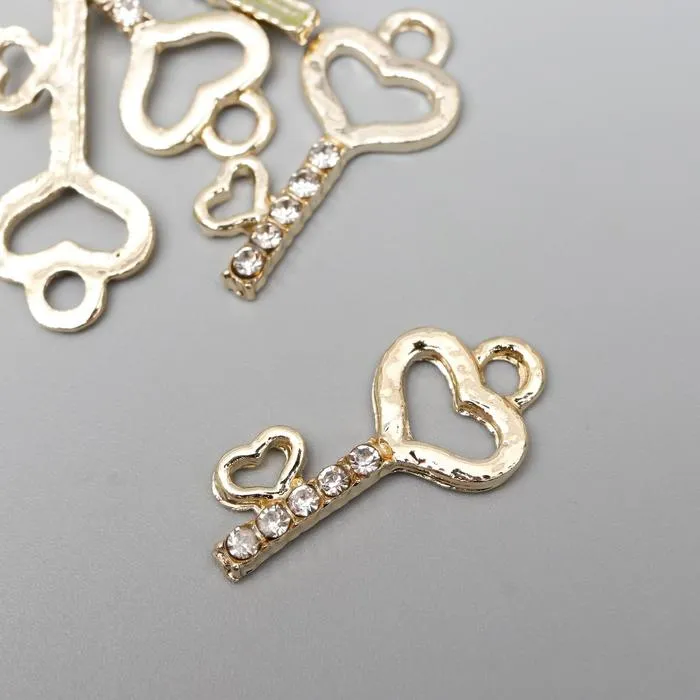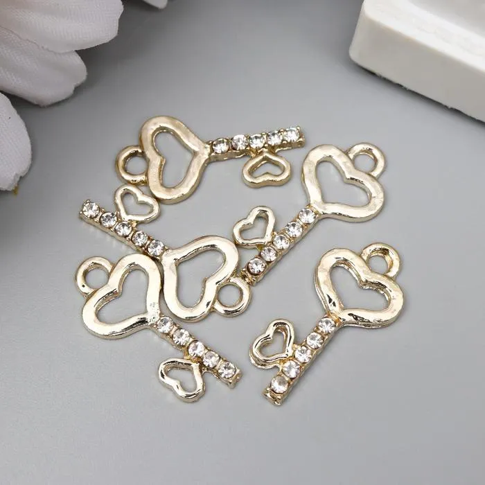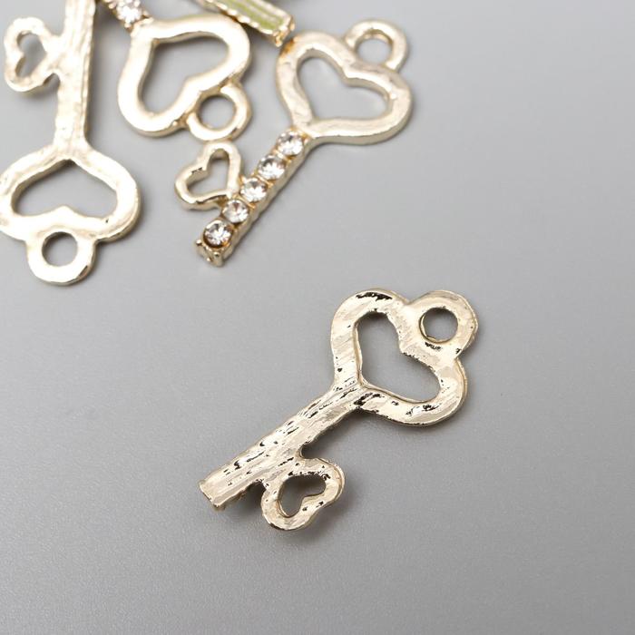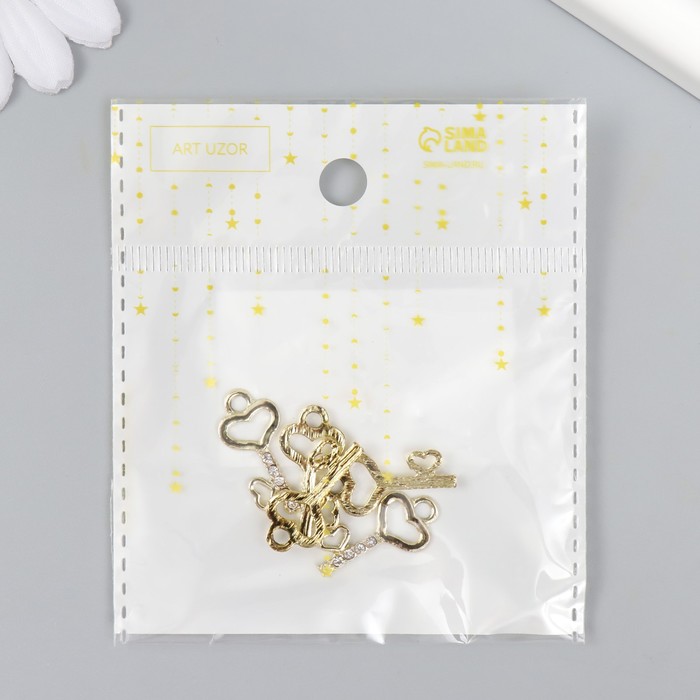 Металлический элемент, декоративная подвеска «Арт Узор. Ключик с сердечками», золото, стразы, 2.5×1.2 см — Характеристики