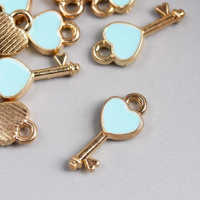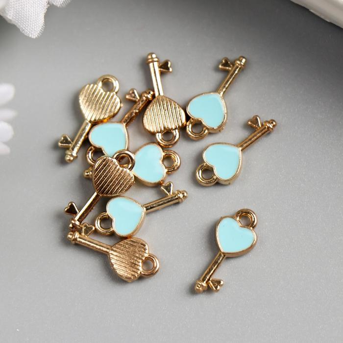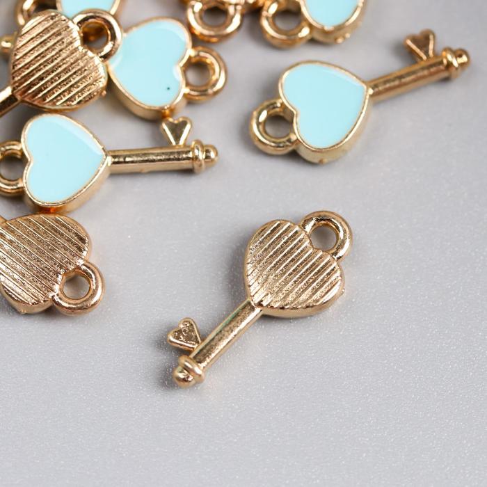 Металлический элемент, декоративная подвеска «Арт Узор. Ключик с сердечком», эмаль, золото, 1.6×0.7 см