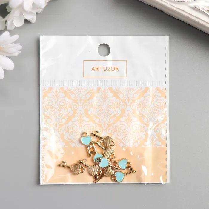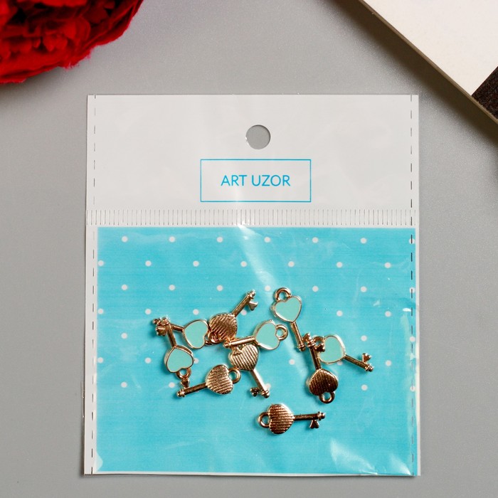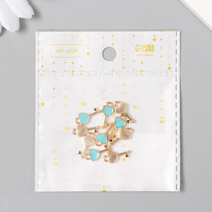 Металлический элемент, декоративная подвеска «Арт Узор. Ключик с сердечком», эмаль, золото, 1.6×0.7 см — Характеристики