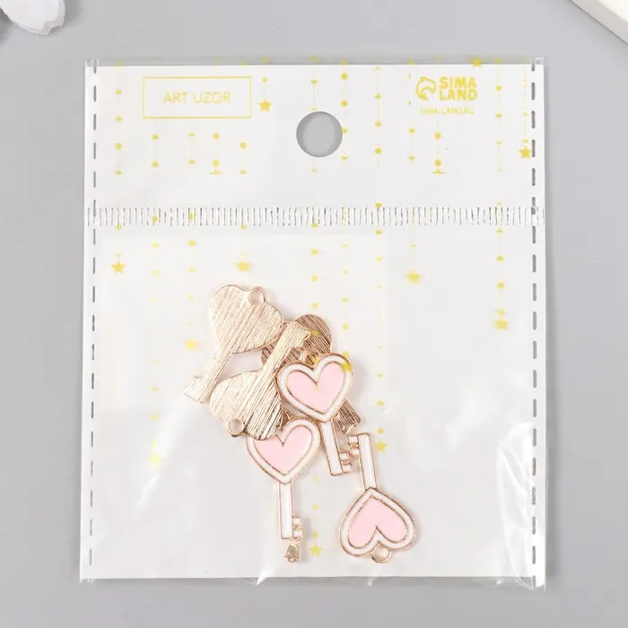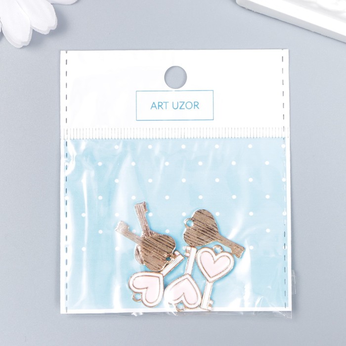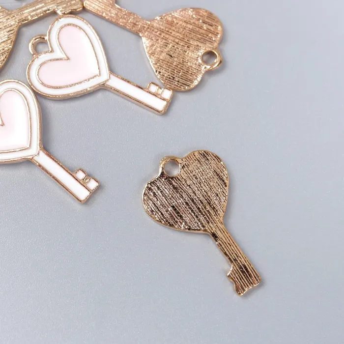 Металлический элемент, декоративная подвеска «Арт Узор. Ключик с сердцем», эмаль, бело-розовый, 1.3×2.3 см — Характеристики