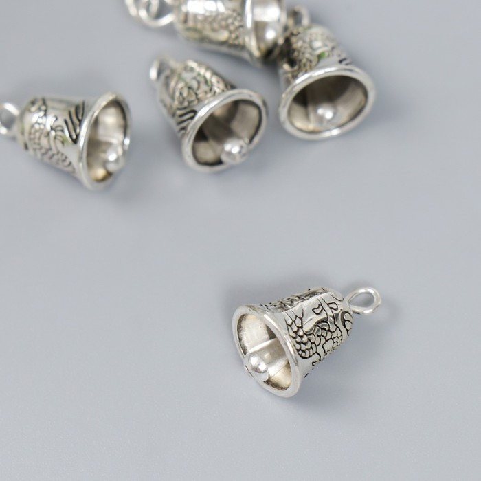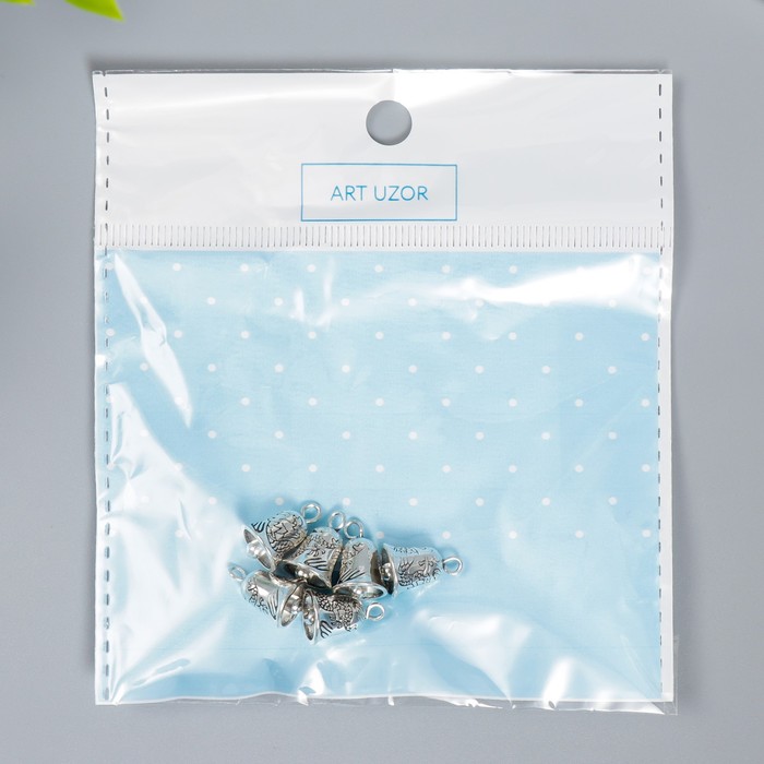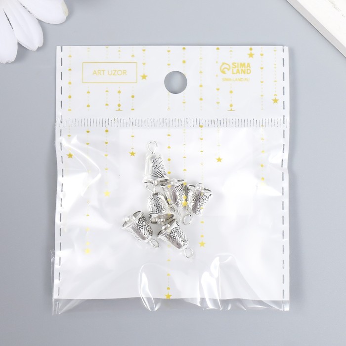 Металлический элемент, декоративная подвеска «Арт Узор. Колокольчик», серебро, набор 6 шт.