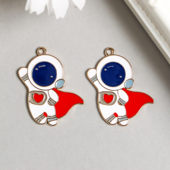Металлический элемент, декоративная подвеска «Арт Узор. Космонавт в красном плаще», золото, 3.1×2.5 см