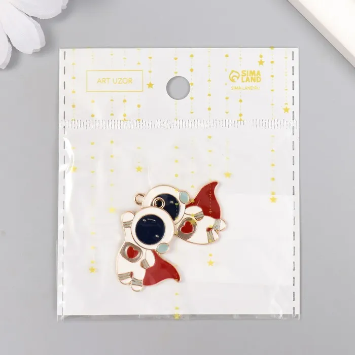 Металлический элемент, декоративная подвеска «Арт Узор. Космонавт в красном плаще», золото, 3.1×2.5 см — Характеристики