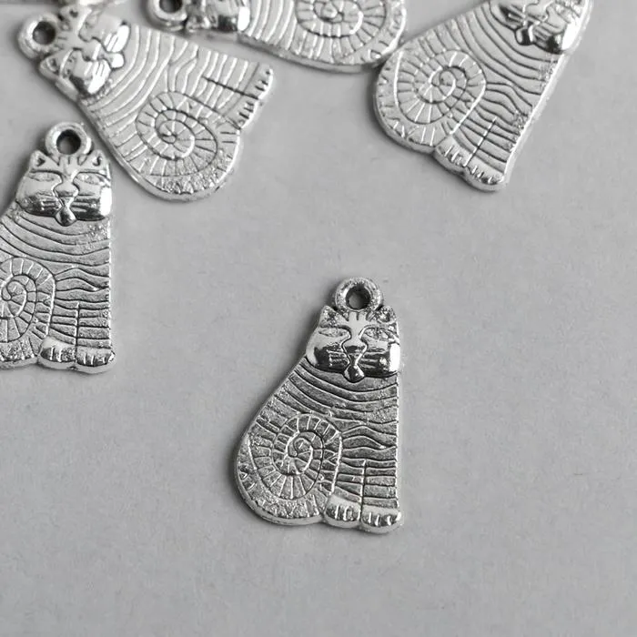 Металлический элемент, декоративная подвеска «Арт Узор. Кот, хвост колечком», серебро, 2.1×1.3 см — Характеристики